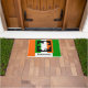 De traditionele groene en oranje strepen van de Ierse vlag vullen een traditionele vorm van shamrock op deze unieke deurmat. De shamrock is omhuld in dramatisch zwart en omgeven door een achtergrond van de Ierse vlag strepen. Jouw naam is vetzwart onderaan. Show je Ierse kant!