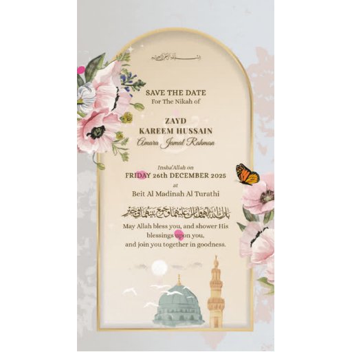Islamitische Trouwkaart Roze Bloem Acryl Madinah Nikah Walima