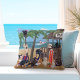 Island Summer Vacation Labradors Pillow. Whimsy en grappig schilderij van de Beach Side Labrador Retriever van Naomi Ochiai uit Japan. Zwarte labrador, gele labrador, chocolade labrador zijn in het afbeelding geschilderd!! Labrador-honden hebben veel plezier op het kleine tropische eiland voor hun zomervakantie. Slapen op de dekstoel, surven planken, palmbomen, luie rustplaats, zo veel mooie atmosfeer daar.
