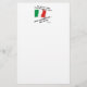 Afbeelding met een golvende vlag van Italië of de Italiaanse vlag, met de tekst: "Het bloed van Italië stroomt door mijn aderen, en soms door zijn wijn." Geweldig om te lachen en om je Italiaanse erfgoed, cultuur en voorouders te herinneren.