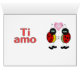 "Ti amo" - "Ik hou van je" in het Italiaans. Geef deze mooie kaart op Valentijnsdag of wanneer je je liefde wilt uitdrukken. Harten van bloemstengels drijven boven een achtergrond van rode en goudlinten.