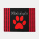 Een leuk portret voor kattenbezitters met Italiaanse connecties. De Italiaanse uitdrukking Attenti al gatto, Beware van de kat, is in stijlvolle, met de hand geschreven, witte letters op een zwart paneel boven een afbeelding van de pootdruk van een reuzenrode kat. Beide zijden zijn een patroon van kleine zwarte kattenpoetjes op een rode achtergrond. U kunt de rode kleur achtergrond, de tekst en de doopvontstijl van de slogan met de aanpassingsknoop veranderen. De deurmat zou een geweldig nieuw thuiscadeau voor vrienden en familie maken met een kat.