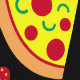 Leuke food thema schil en stok behang met kleurrijke rode en gele pepperoni pizza plakjes over zwart. Het is perfect om een muur in je keuken of restaurant te creëer!