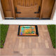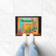Doormat met afbeelding van het Italiaanse platteland door een raam met het Italiaanse woord om welkom te heten.