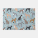 Italiaanse honden met een kruidachtige hond zitten en staan met grijze, flauwe, zwarte, rode vacht en blauwe jassen met verspreide botten en poetsdruppels.