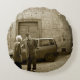 Een rondwerper met een sepiafoto van twee oude mannen in Italië die op straat een discussie voeren met een fiatauto op de achtergrond, waardoor een scène ontstaat zoals in een film van de italiaanse maffia Godfather.