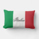 Vlag van Italië met de tekst "Italia" in vloeiend schrift aan één kant van het kussen.