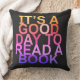 Het is een goede dag om een boek, kleurrijke tekst te lezen. Gelukkig kleurrijk kussen voor degenen die graag lezen!