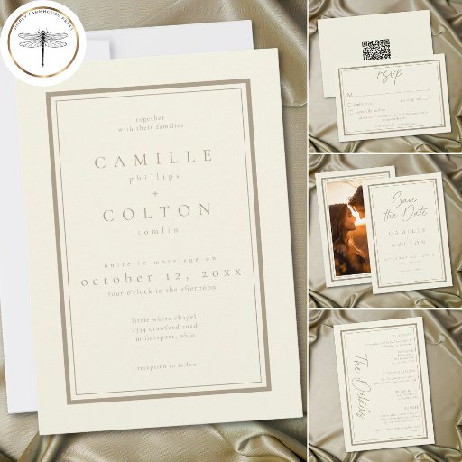 Ivory Cream Minimalist Frame Wedding Photo Save The Date