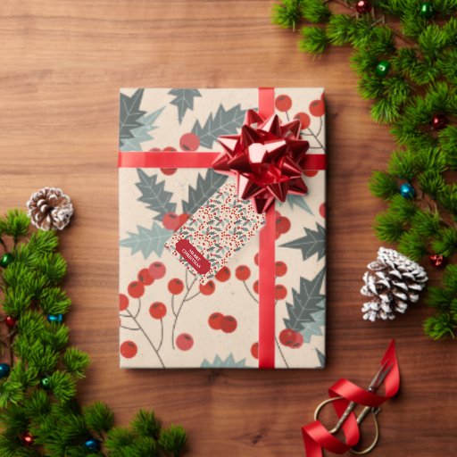 Modern Holly Berry Christmas Botanical PatternOntworpen door iDove Design