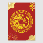 Een traditioneel stijlontwerp dat gewijd is aan de Chinezen/lunar nieuwjaarsfeesten, met name onder de Aziatische gemeenschap voor het jaar van de tijger 2022. Het kunnen cadeaus zijn voor de lunardiners van het nieuwe jaar, familiebezoeken, en bezoeken aan psychiaters en tempels voor geluk. Het past ook bij de Chinese gebeurtenissen die het dierenwelzijn voorschrijven, of bij de nieuwe etenlunar. Moge het geluk in ons leven belanden in 2022 Het ontwerp was geïnspireerd door traditionele Aziatische en Chinese kunststijlen voor cirkelvormig ontwerp voor emblemen en symbolen. Bovenaan staat "Xīnnián kuàile", wat betekent gelukkige lunch nieuwe jaren in het Chinees. Een Chinees karakter voor tijger wordt geschreven in een kalligrafische doopvont om de authenticiteit aan Aziatische stijlen te verhogen.