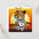 De jachtluipaard (Acinonyx jubatus) is een grote kat en het snelste landdier. Het heeft een tawny tot romige witte of bleke buff vacht die is gemarkeerd met gelijkmatig verdeelde, solide zwarte vlekken. De kop is klein en rond, met een korte snuit en zwarte scheurachtige gezichtsstrepen. Het bereikt 67-94 cm (26-37 inch) aan de schouder en de hoofd-en-lichaamslengte ligt tussen 1,1 en 1,5 m (3 ft 7 in en 4 ft 11 in). Volwassenen wegen tussen 21 en 65 kg (46 en 143 lb). De cheetah kan met 93 tot 104 km / h (58 tot 65 mph) lopen; het heeft gespecialiseerde aanpassingen voor snelheid ontwikkeld, waaronder een lichte bouw, lange dunne benen en een lange staart. Oorspronkelijke Vecto Art Copyright BluedarkArt The ChameleonArt.