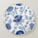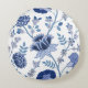 Jacobean Bloemen LG Patroon Blauw op Wit Rond Kussen