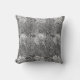 Art Nouveau, Jacobean damast patroonkussen van gestileerde, gescrolde bladeren en bloemen, gebaseerd op een William Morris textielontwerp, digitaal verbeterd en gekleurd in lichtzilver tot diep grafietgrijs, geaccentueerd met witte bloemen