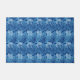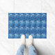 Doormat in een Art Nouveau, Jacobean damask model of stylized, scrolled bladeren and bloemen, gebaseerd op een textielontwerp van William Morris, digitaal versterkt en gekleurd in lichthemel blauw op een diepe marine/indigoblauwe achtergrond, geaccentueerd met witte bloemen