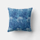 Art Nouveau, Jacobean damast patroon gooi kussen van gestileerde, geschoven bladeren en bloemen, gebaseerd op een William Morris textiel ontwerp, digitaal verbeterd en gekleurd in licht hemelsblauw op een diepe marine / indigo blauwe achtergrond, geaccentueerd met witte bloemen