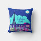 Kussen in een reisposter van Parijs onder een diepblauwe sterrenhemel met volle maan, en het onderschrift "J'adore Paris"