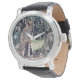 In het bos afgebeeld in een olieverfvormig ontwerp houdt een Jaguar horloge
