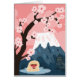 Een door Japan geïnspireerde cartoon met sneeuwaap, kersensbloesems en de berg Fuji.