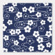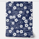 Vector illustratie van gestileerde witte sakura kersenbloesem bloemen en wervelingen op blauwe achtergrond. Geïnspireerd door traditionele kimono stofpatronen van Japan.