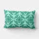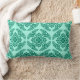 Lumbar kussen in een klassiek Japans kimonopatroon van gestileerde, vierwegs, miljoenen bladeren en bloemen in diepe turquoise op een zachte aquaachtergrond