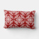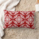 Lumbar kussen in een klassiek Japans kimonopatroon van gestileerde, vierwegs, miljoenen bladeren en bloemen in wit op een diepe Chinese rode achtergrond