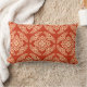 Lumbar kussen in een klassiek Japans kimono-patroon van gestileerde, vierwegs, mengelen bladeren en bloemen in pastel-sinaasappel op een diepgaande oranje achtergrond