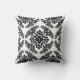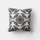 Gooi kussen in een klassiek Japans kimonopatroon van gestileerde, vierwegs, miljoenen bladeren en bloemen in klassiek zwart op een diepe witte achtergrond