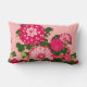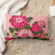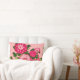 Lumbar kussen in een grensdruk van chrysanten en bladeren, in tinten diepe fuchsie en koraalroze - digitale kunst gebaseerd op een Japanse afbeelding