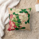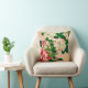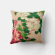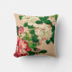 Gooi kussen in een Japans schilderij van diepe roze en witte kamellia's en groene bladeren op een lichtbeige achtergrond, digitaal versterkt