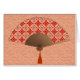 Een klassieke Japanse ventilatornotitiekaart in de Japanse Shippo, of een "zeven schatten" patroon van het met elkaar verbinden van cirkels met een centraal bloemmotief, bloemen in crème en tangerine oranje met een diepe mandarijn en een pastel oranje achtergrond