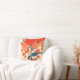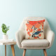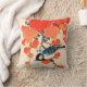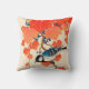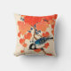 Gooi kussen op een Japans schilderij van een blauwe jay-vogel en wilde druiven, in tinten van het najaar oranje en diep blauw, tegen een licht beige achtergrond, digitaal versterkt