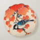 Ronde kussen in een sinaasappel Japans schilderij van een blauw jay vogeltje en wilde wijnstok, in de kleuren herfstblauw en diepblauw, op een lichtbeige achtergrond, digitaal versterkt
