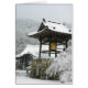 Japanse winterscène met sneeuw vallen rond de gouden bel bij Honkokuji-tempel in Kyoto