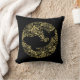 Stijlvolle zwarte kussen, bedrukt met een gouden en zwarte Koi-visontwerp. Zwart vissilhouet op een decoratieve goudcirkel.