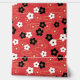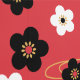 Vectorillustratie van gestileerde zwarte en witte sakura-kersen bloesem bloemen en gouden zwellen op rode achtergrond. Geïnspireerd door traditionele kimono-fabric-patronen van Japan.