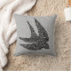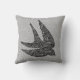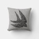 Drijf kussen in een gemengde media-textielafdruk van een zwaluw tijdens de vlucht, in een Japans wolkenpatroon tegen een zwiep gevlekte achtergrond, in diepe kool grijs/grijs, lichtzilver grijs en wit