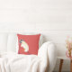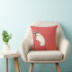 Rood werpkussen met een schilderij in Japanse stijl van een witte kraan.