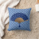 Een klassieke Japanse ventilator gooit kussen in een traditionele Japanse libellen, of een tombopatroon, ook katsumushi ("winnende insecten") genoemd door samurai-strijders, die dragonfly-motieven gebruikten om overwinning aan te halen - lichte hemelblauwe libellen op donker kobalt / blauw van de marine, met een coördinerende beschermde achtergrond