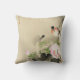 Dit prachtige sierkussen heeft een klassieke, , japanse vogelprint met een waterverf, roze bloesems en groene bladeren. Personaliseer de tekst eenvoudig met jouw naam.