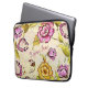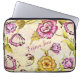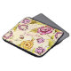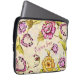 Japans bloemontwerp, afkomstig van een prachtige porseleinkommel. De bloemen hebben een inkt- en waterverf-effect, dat wordt weergegeven in tinten licht en donker, goudgeel en oranje. Bladeren zijn grijs en donkergroen. De achtergrond heeft een uniek gemarmerd effect van de waterverf, gebruikend lichtgeel, vette roze, en lichtgrijs viool. Voeg eenvoudig jouw naam of initialen toe aan deze elegante botanische laptophoes.