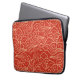 Neopreen-sleeve in een Japans wolkenpatroon, met een subtiele, gestreepte, rauwe zijdestructuur - diep koraal sinaasappel, voorzien van zacht pastelkoraal / abrikos