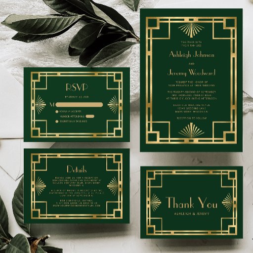 Vintage 1920s Green Gold Deco Frame Wedding SuiteOntworpen door Akhates Designs