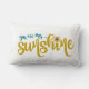 Kute lumbale kussen in een blauwgroen en mosterdgeel script "You are my sunshine"-typografie met zonnebloem. Het ontwerp wordt aan beide zijden van de kussen herhaald.