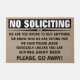 Verstuur die pesky deurknockers weg met een knobbeltje met een aangepaste klep "No Soliciting"-deur voor je huis! De tekst luidt: Geen enkele oproep - we zijn te blut om iets te kopen - we weten waar we voor stemmen - we hebben Jezus gevonden - serieus: Tenzij je __fill_in_the_blanks__ bent - Alsjeblieft, ga weg! Vervang onze tekst (HET WEGGEVEN VAN BEER) met uw eigen tekst. Pas de achtergrondkleur aan uw keuze aan.