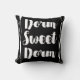 Thuiszoete Dorm-kussens hebben leuke en grappige witte tekst waarin je de kleur kunt kiezen. U kunt het zwart-wit houden zoals getoond of de grijsgroene kleur of om het even welke neutrale of donkere of heldere kleur proberen. Gebruik enkel de aanpassingsoptie om de achtergrondkleuren te krijgen - kies geavanceerd om OM HET EVEN WELKE kleur te kiezen.