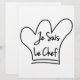 Chef's pet, toque blanche, cartoon stijl met Franse tekst.