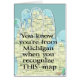 Michigan FUNNY Up North Yooper Je zou Michigander kunnen zijn als: State Bird is Mosquito, Fudgies gaat naar huis, je weet hoe je makreel, octopus en Hockey uitspreekt, Bake met Soda en Drink Pop, Big Mac is iets waar je over rijdt, je gebruikt je palm als kaart.