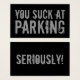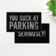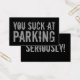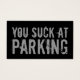 Je zuigt bij het parkeren van zwarte grappige grap visitekaartje