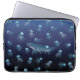 Een illustratie van een walvis en kwal die zwemt in de diepte van de oceaan. Een blauw marien met de thema kwallen.